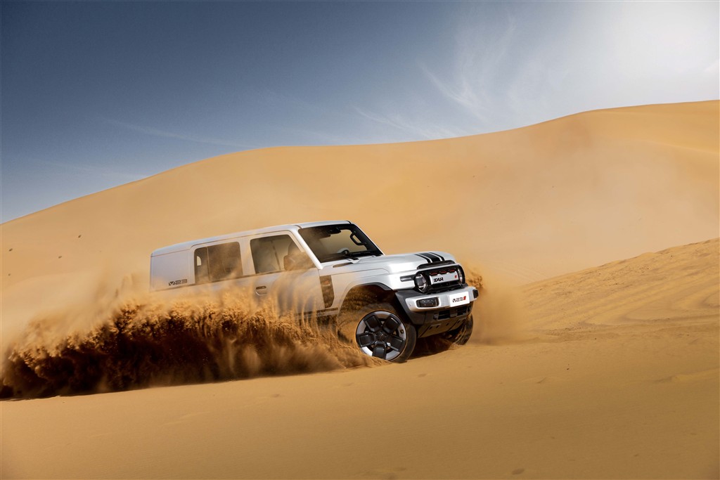 Çöl zirvelerini aşmak, bir aracın genel performansının nihai testidir. Bu tip testler güç, dört çeker sistemi, şasi dayanıklılığı, elektronik kontrol ve ısı yönetimi gibi birçok sistemi sınar. Genellikle saf elektrikli kutu tipi araçların “zarif ama dayanıklı değil” olarak algılandığı bir ortamda, iCAUR V23 olağanüstü ürün gücüyle öne çıkıyor.