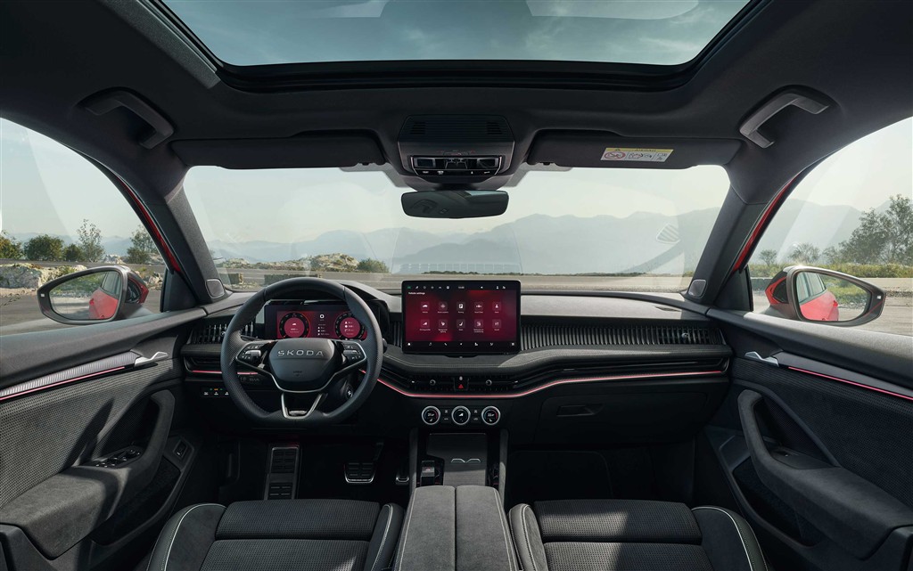 Superb Sportline’ın kabininde de sportif atmosfer dikkat çekiyor. Entegre başlıklı spor ön koltuklar, suedia döşemeleriyle dokunsal bir his sağlarken, masaj fonksiyonu, ısıtma özelliği ve elektrikli hafıza fonksiyonuyla konforu ve sportifliği bir arada sunuyor. Sportline logolu progresif üç kollu spor direksiyon ve çelik pedallar, sürüş modu ve direksiyondan vites kontrolü (shift-by-wire) sürüş keyfini daha ileriye taşıyor. Üç bölgeli tam otomatik klima sistemi, 10.25” dijital gösterge paneli, 13” bilgi-eğlence sistemi ve kablosuz şarj fonksiyonu da aracın öne çıkan özellikleri olarak dikkat çekiyor.